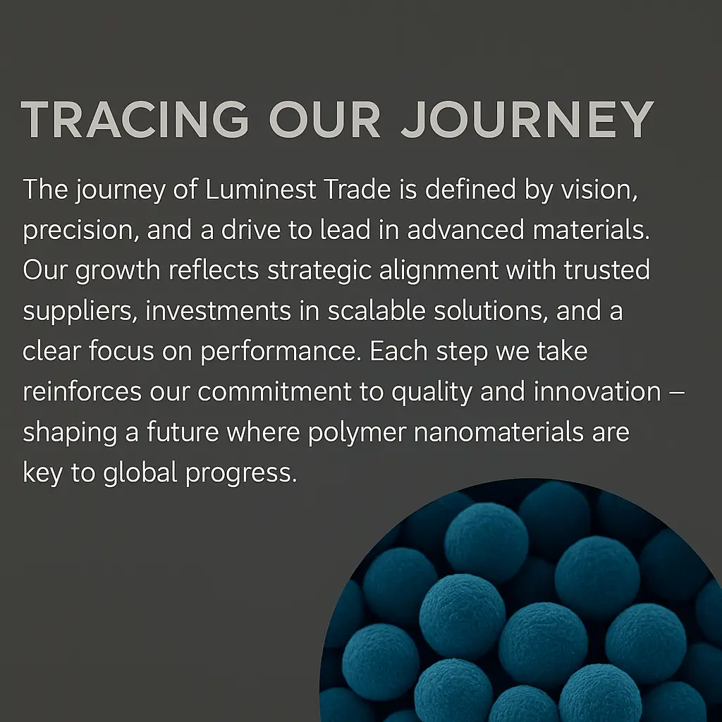 With every step, Luminest Trade moves forward—driven by purpose, powered by trusted partnerships, and focused on the future of polymer nanomaterials.